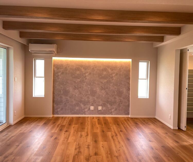 リビングはおよそ22帖と広々とした設計で、家族やゲストが集まってもゆとりを感じられる空間になっています。