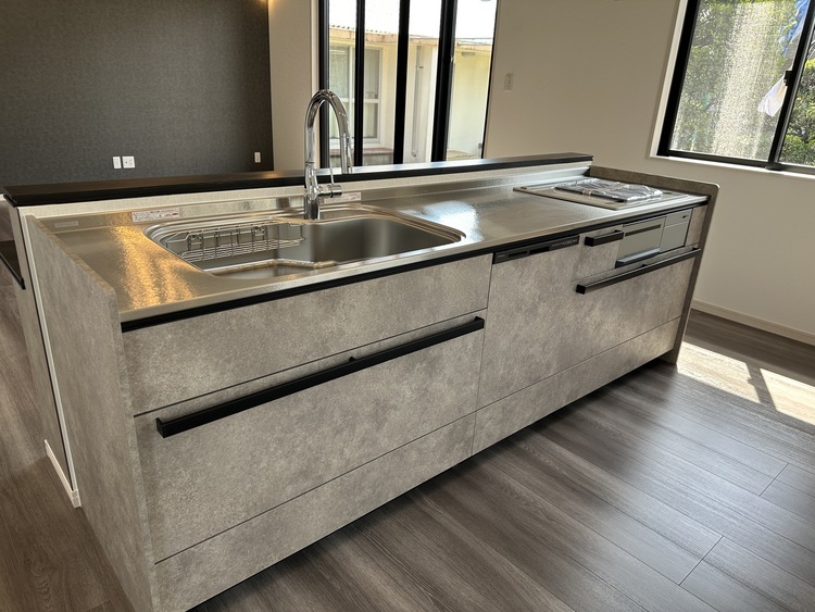 キッチンは奥様こだわりのアイランドキッチンを設置。オール電化のキッチンは、日々のお手入れも楽々です。