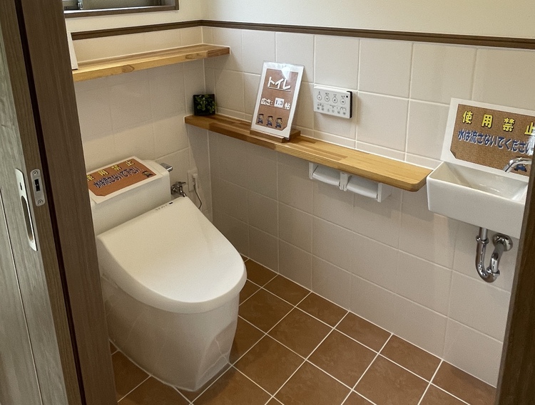トイレは少し広めに設け、壁や床にはお手入れしやすいタイル調の素材を採用。日常的な掃除のしやすさにも配慮しました。また、玄関横は広めの土間収納も。お庭道具や日用品のストックなどをスッキリとしまえる、頼もしい収納スペースです。