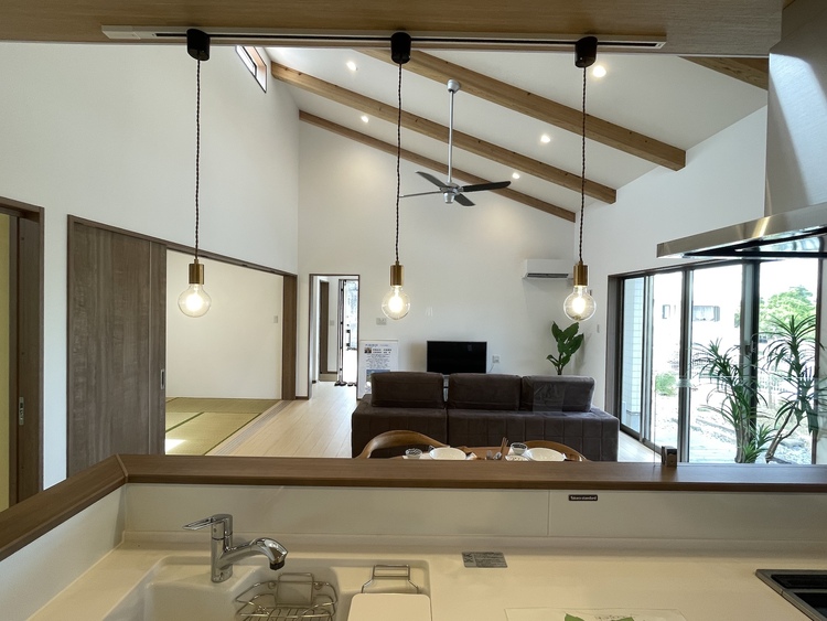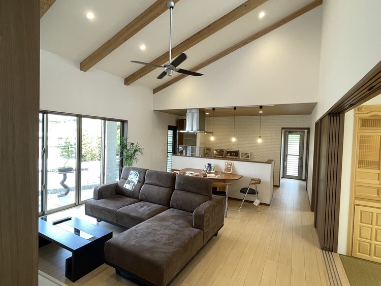 家の中心となるLDKは、和室とひと続きの空間に。LDKだけでも20帖ほどの広さがあり、ご夫婦の生活にゆとりをもたらしてくれます。