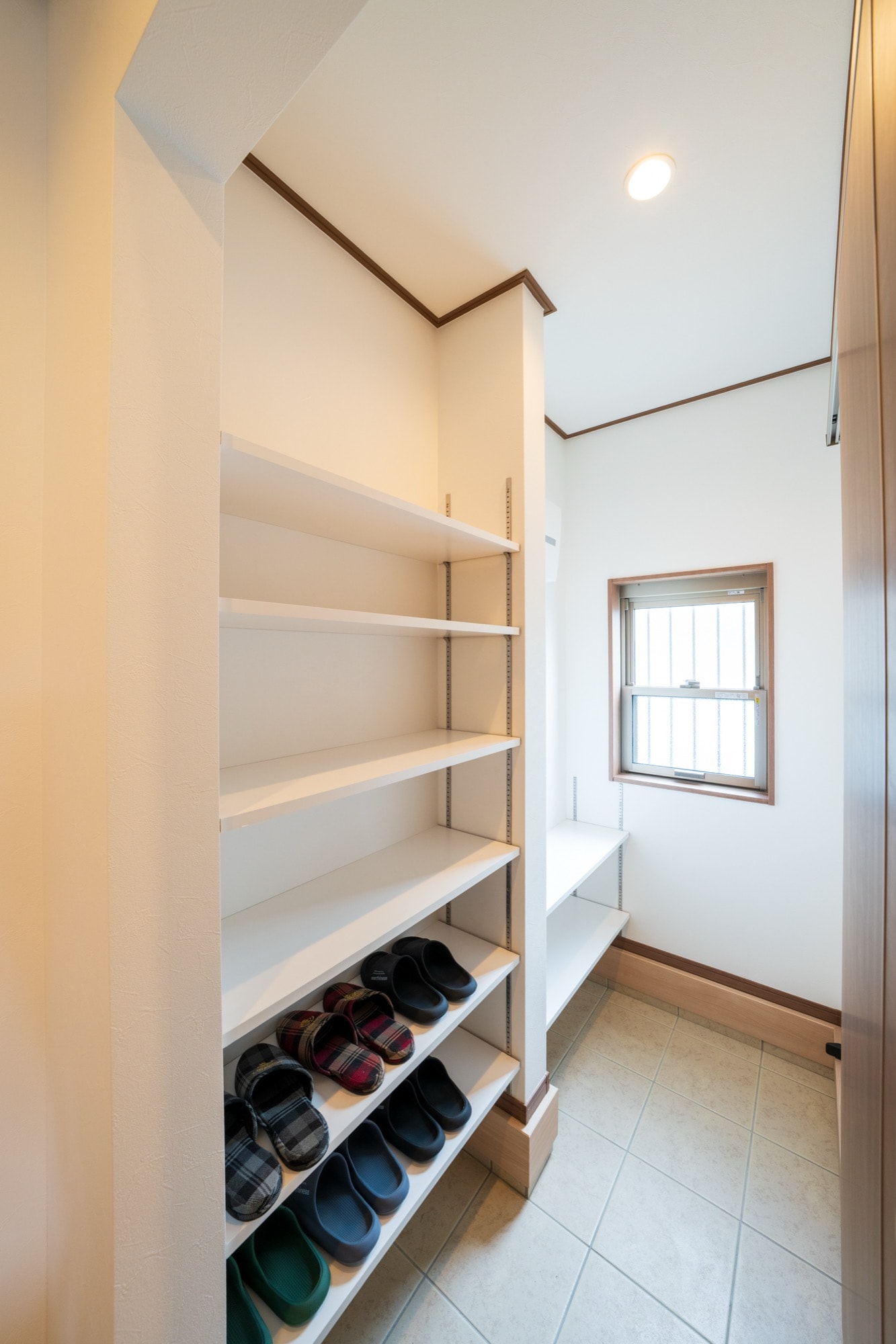 玄関横には、ゆとりある広さの土間収納を配置。盆栽用のお庭道具や、かさばる日用品のストックなどを一箇所にまとめて収納可能です。